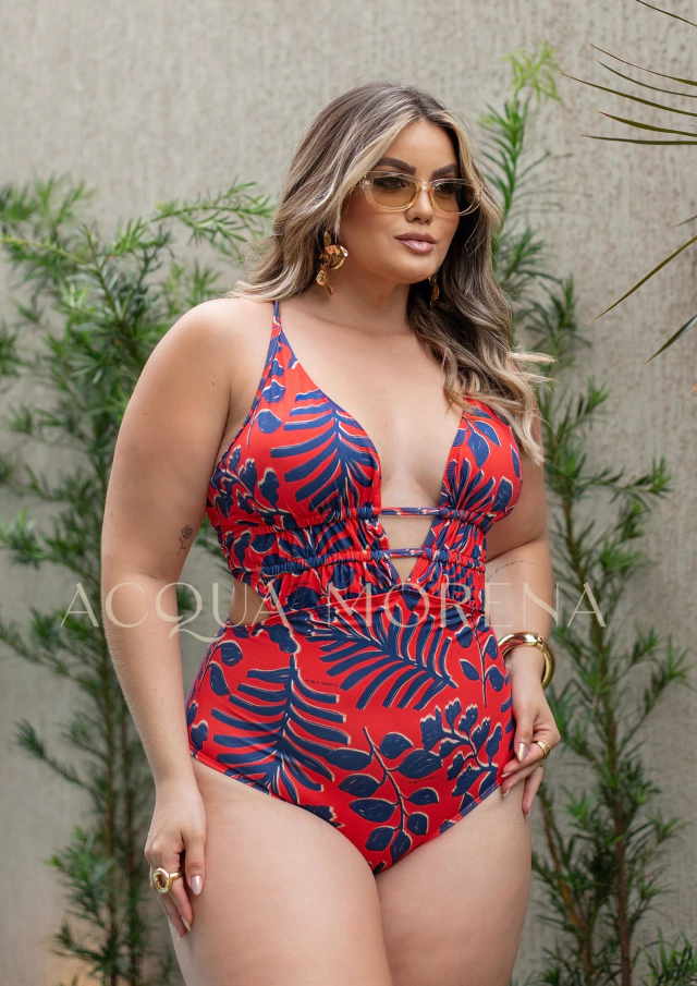 Com decote profundo e recorte frontal que afina a cintura, o Maiô Engana Mamãe combina elegância e ousadia na medida certa. É o modelo mais aberto da linha, ideal para quem gosta de peças marcantes que valorizam o corpo com charme, confiança e conforto.